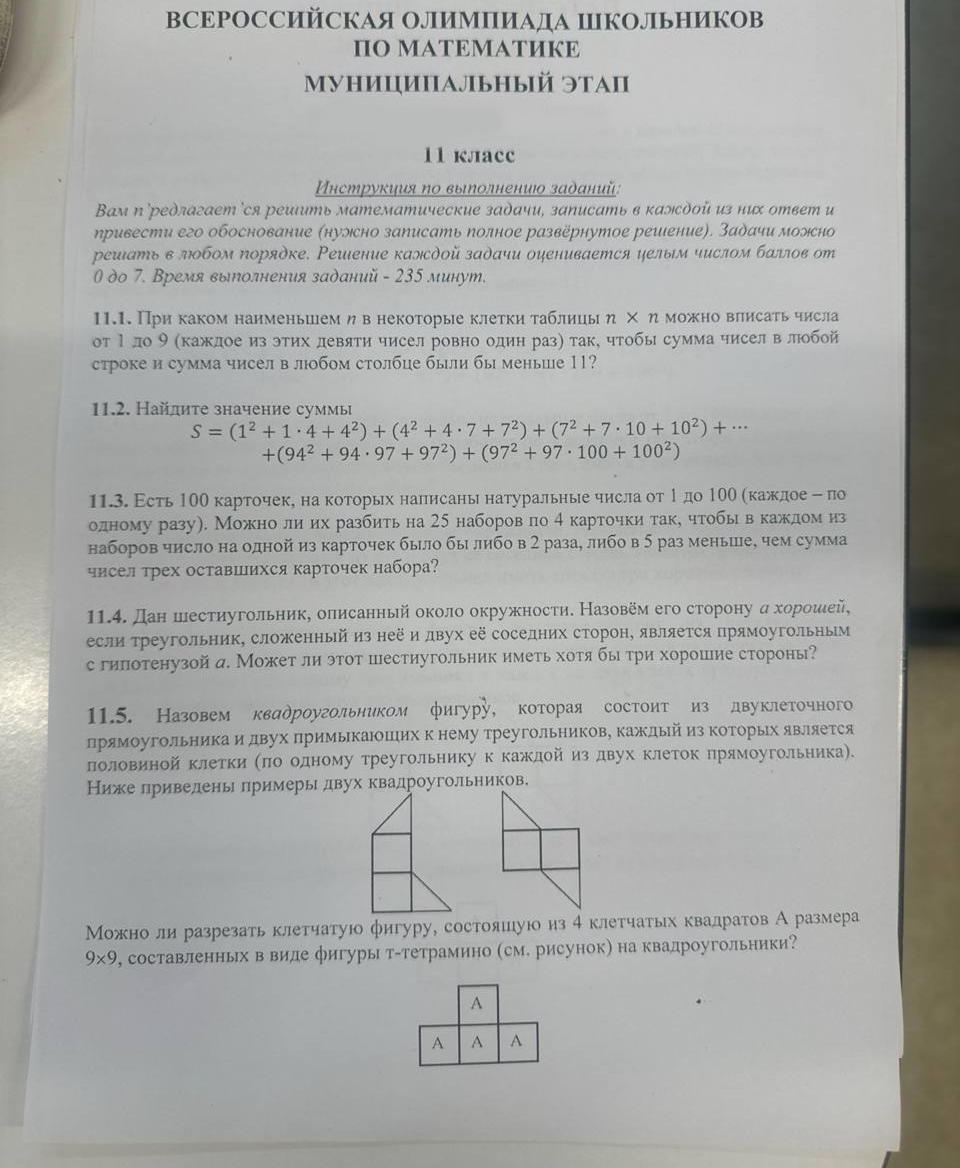 Муниципальный этап ВОШ 7-11 класс Математика Московская область (50 регион) ответы и задания 08.11.2025...