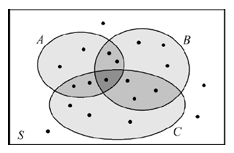 На диаграмме Эйлера изображён опыт S. В опыте 20 событий. Найдите вероятность события (A U B) ∩ ~C.