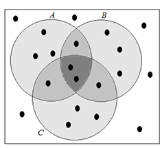 На диаграмме Эйлера изображены три события A, B и C. Всего 15 равновозможных событий. Найдите вероятность события (A U C) ∩ B.