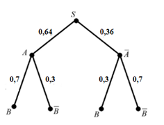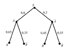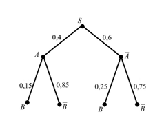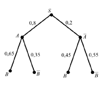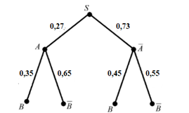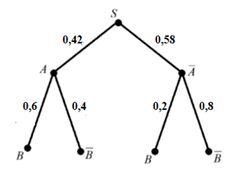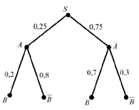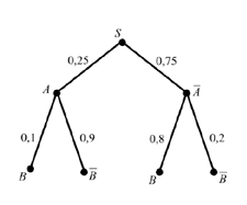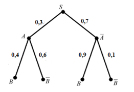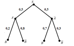 На рисунке изображено дерево некоторого случайного опыта S, в котором рассматриваются события A и B. Найдите вероятность события B.