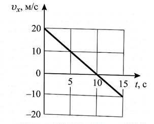 Ускорение — это скорость изменения скорости, то есть наклон графика vx(t). По графику выберем две удобные точки: начальную (t1 = 0 с, v1x = 20 м/с) и точку пересечения с осью времени (t2 = 10 с, v2x = 0 м/с).