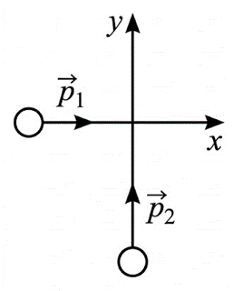 По гладкой горизонтальной плоскости вдоль осей х и у движутся две шайбы с импульсами, равными по модулю p1 = 2 кг·м/с и p2 = 2,5 кг·м/с (см. рисунок). После их соударения вторая шайба продолжает двигаться вдоль оси у в прежнем направлении с импульсом, равным по модулю p3 = 1 кг·м/с. Найдите модуль импульса первой шайбы после удара.