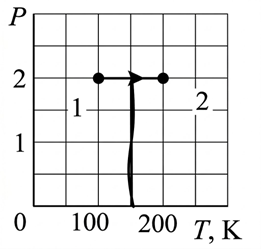 По графику: начальная температура T1 = 100 К, конечная T2 = 200 К.