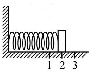 Груз изображённого на рисунке пружинного маятника совершает гармонические колебания между точками 1 и 3. Как меняются потенциальная энергия пружины маятника и жёсткость пружины маятника при движении груза маятника от точки 2 к точке 3?