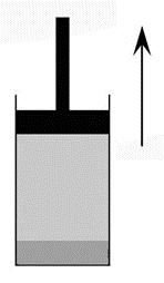 В цилиндре под поршнем находится жидкость и её насыщенный пар (см. рисунок). Как будут изменяться давление и масса пара при медленном перемещении поршня вверх при постоянной температуре? До конца процесса на дне сосуда остаётся некоторая масса жидкости.