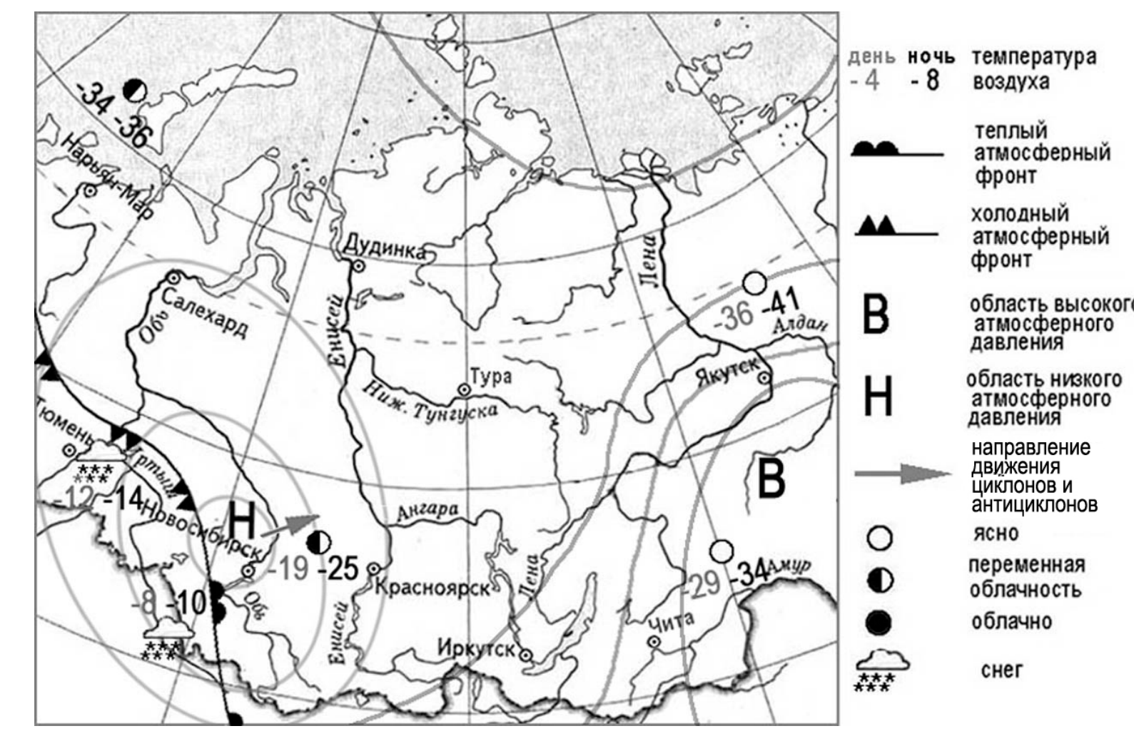 Задания 5 и 6 (Вариант ГГ2590201) выполняются с использованием приведённой ниже карты погоды.