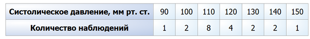 (Систолическое давление, мм рт. ст., 90, 100, 110, 120, 130, 140, 150, Количество наблюдений)