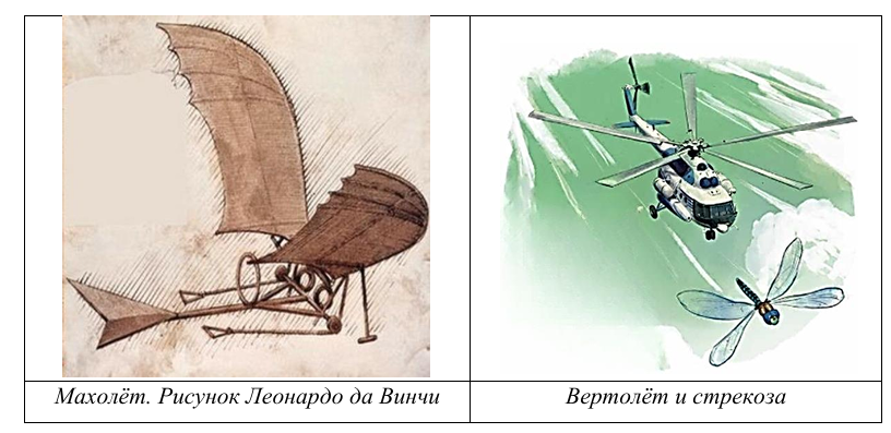 Ответ: Чтобы находить идеи и подсказки для своих будущих полезных устройств (например, глаза кошки стали примером для светоотражателей, а птицы — для летательных аппаратов).